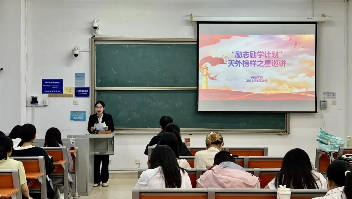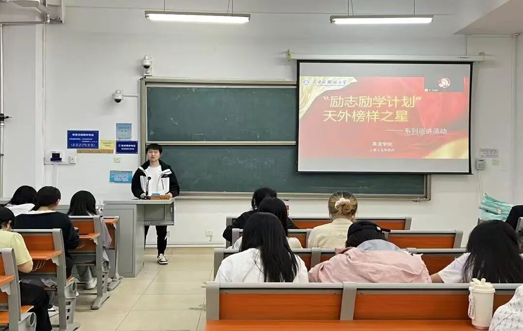 为深入贯彻落实立德树人根本任务,充分发挥优秀学子示范引领作用,搭建朋辈互助成长平台,近日,tyc522cc太阳成集团开展“励志励学计划”天外榜样之星巡讲活动。本次活动邀请了求索荣誉学院夏蒋义、欧洲语言文化学院周彤、亚非语学院金承乐三位国家奖学金获得者,围绕学术规划、科研突破、实践创新等维度进行分享,80余名英院学子积极报名,现场聆听,共赴一场青春与奋斗的对话。