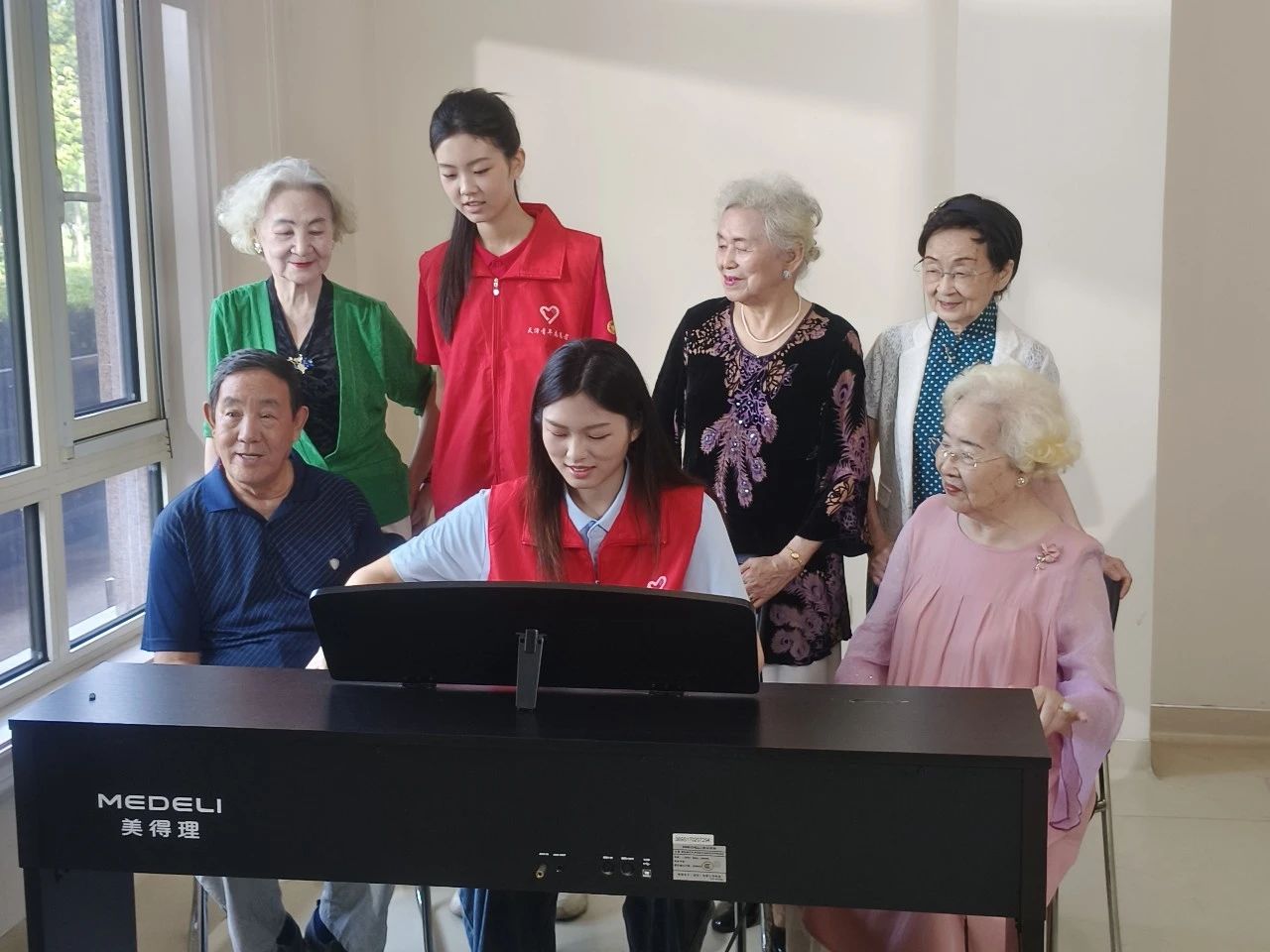 志愿服务的温度同样延伸到日常生活的细微处。路队成员何孟妍在康宁津园养老院慰问老人,为他们带来一场特别的“音乐下午茶”。她坐在钢琴前,指尖轻触琴键,悠扬的旋律在院内缓缓流淌,不少老人跟着轻轻哼唱,现场气氛温馨而安宁。